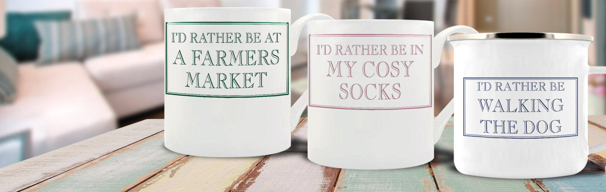 Established in 2004, we are a family business based in North Norfolk and we produce the famous I’d Rather Be… range of fine bone china mugs, along with our other original printed mugs, tote bags, coasters and lots more!