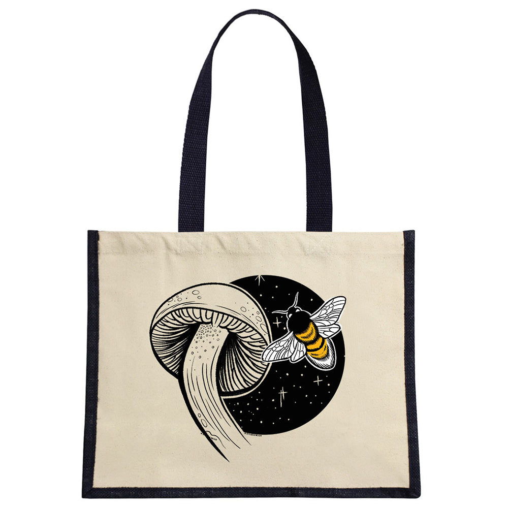 Fungi Friends - Busy Bee Cream & Black Jute Bag