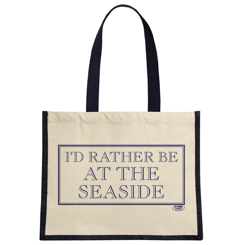 I’d Rather Be At The Seaside Cream & Navy Jute Bag