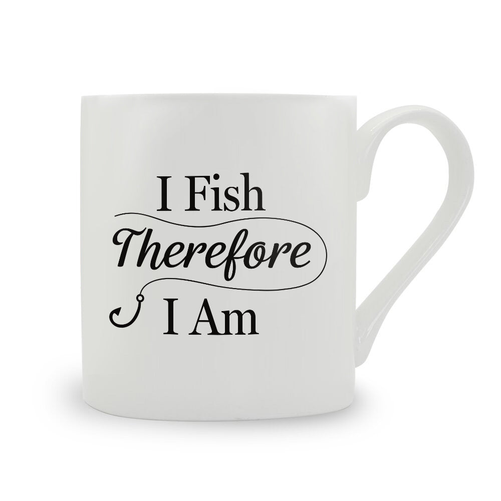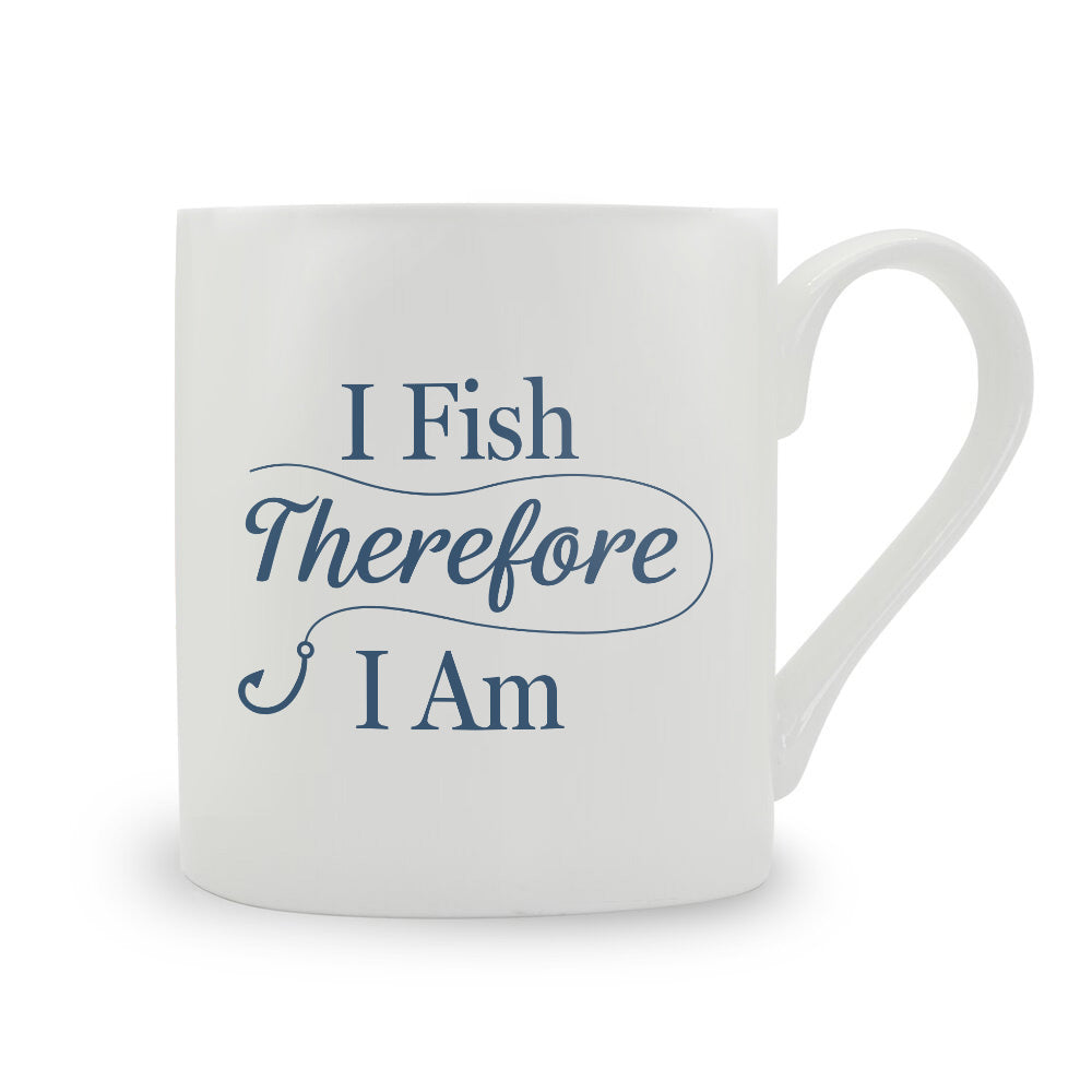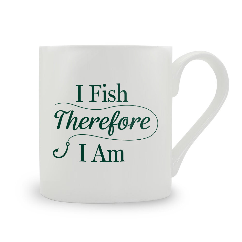 I Fish Therefore I Am Bone China Mug. Dishwasher/microwave safe.