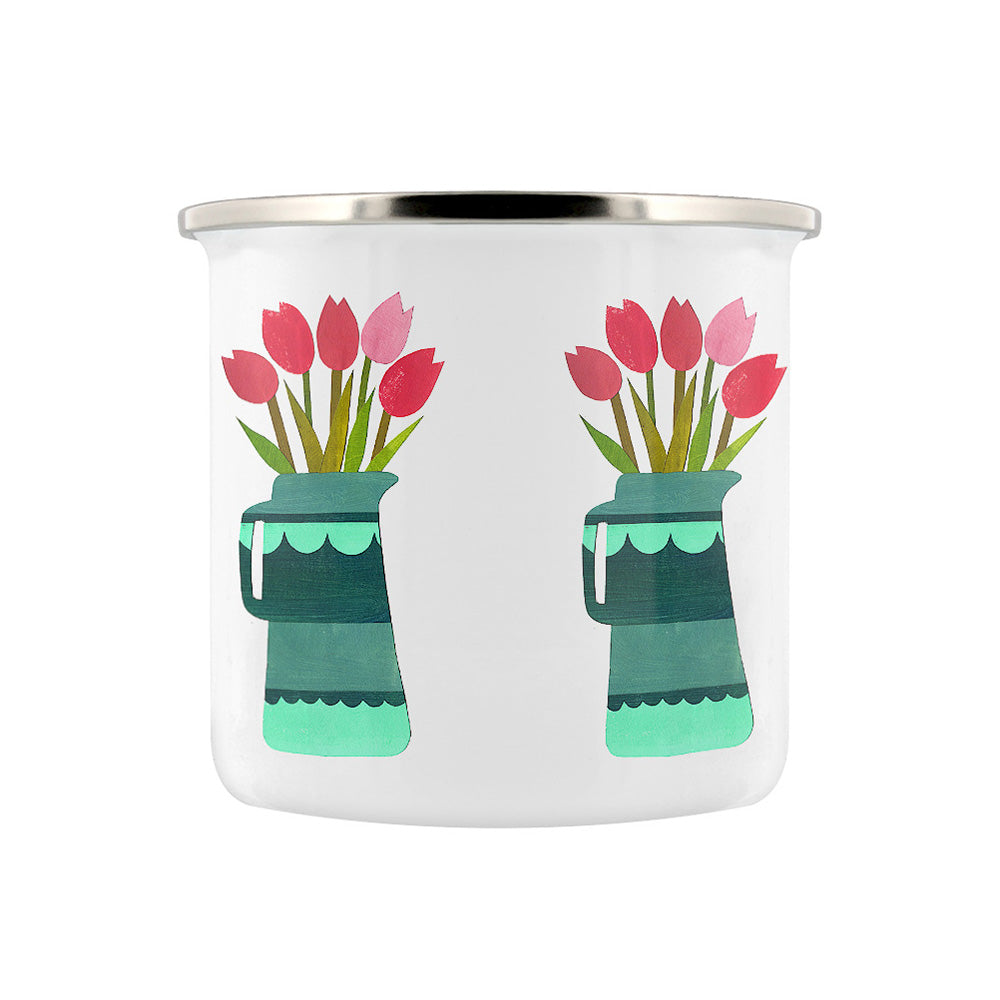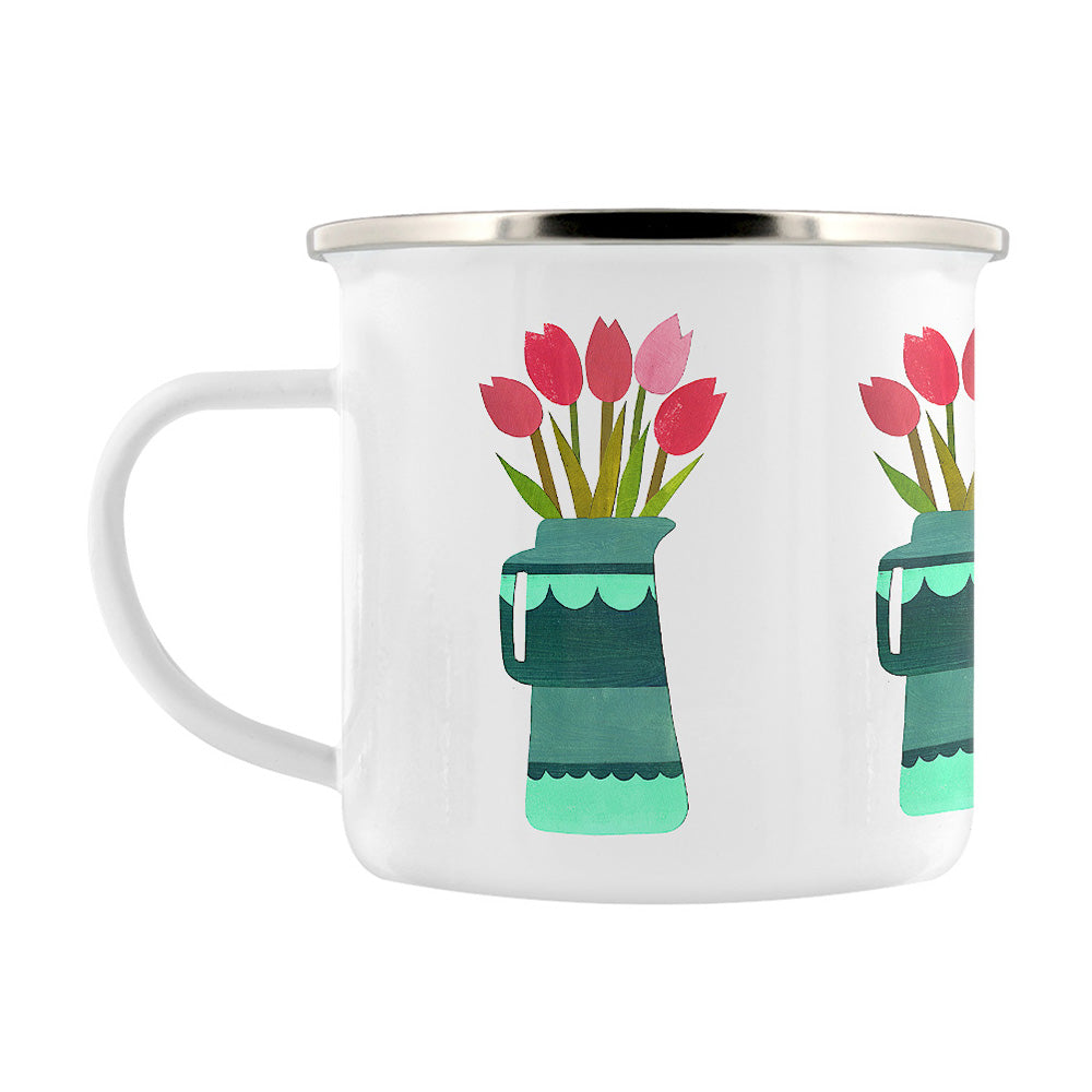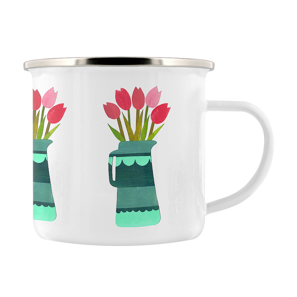 Add a splash of cheer to your tea time with this bright and charming enamel mug from IzziRainey. Featuring an elegant jug of flowers design, it's the perfect pick for any flower lover.