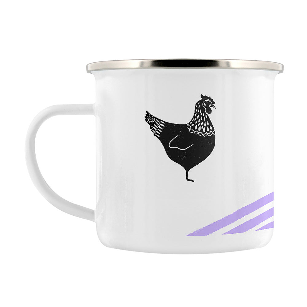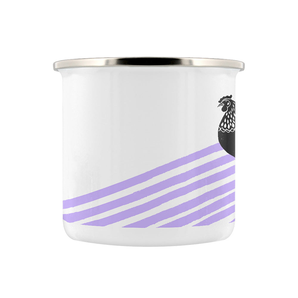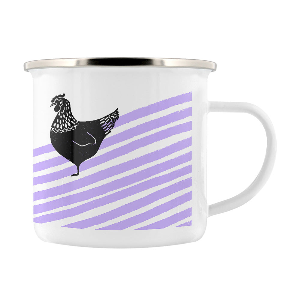 Bring a touch of farmyard charm and a splash of vibrant colour to your kitchen with this striking lilac chicken enamel mug from IzziRainey!