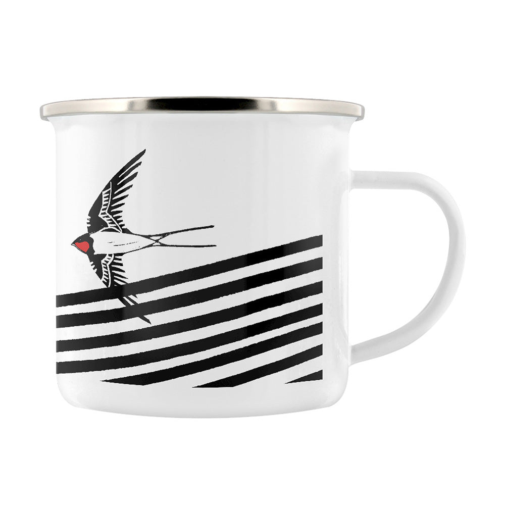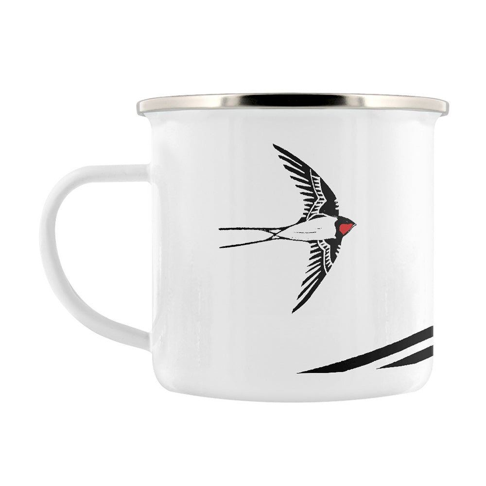 Savour a cup of tea on your bird watching adventures with this charming swallow enamel mug. The perfect companion for every tea break in the great outdoors!