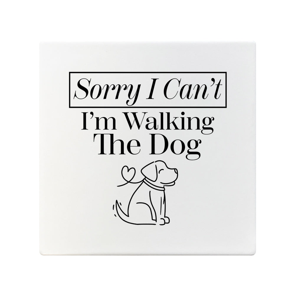 Sorry I Can't I'm Walking The Dog Square Ceramic Coaster