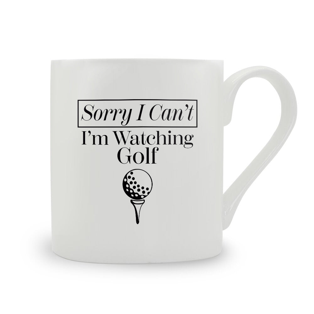 Sorry I Can't I'm Watching Golf Bone China Mug. Dishwasher/microwave safe.