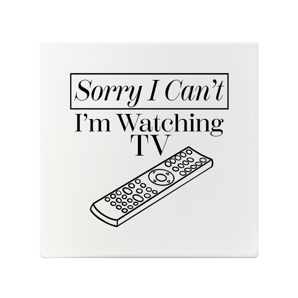 Sorry I Can't I'm Watching TV Square Ceramic Coaster