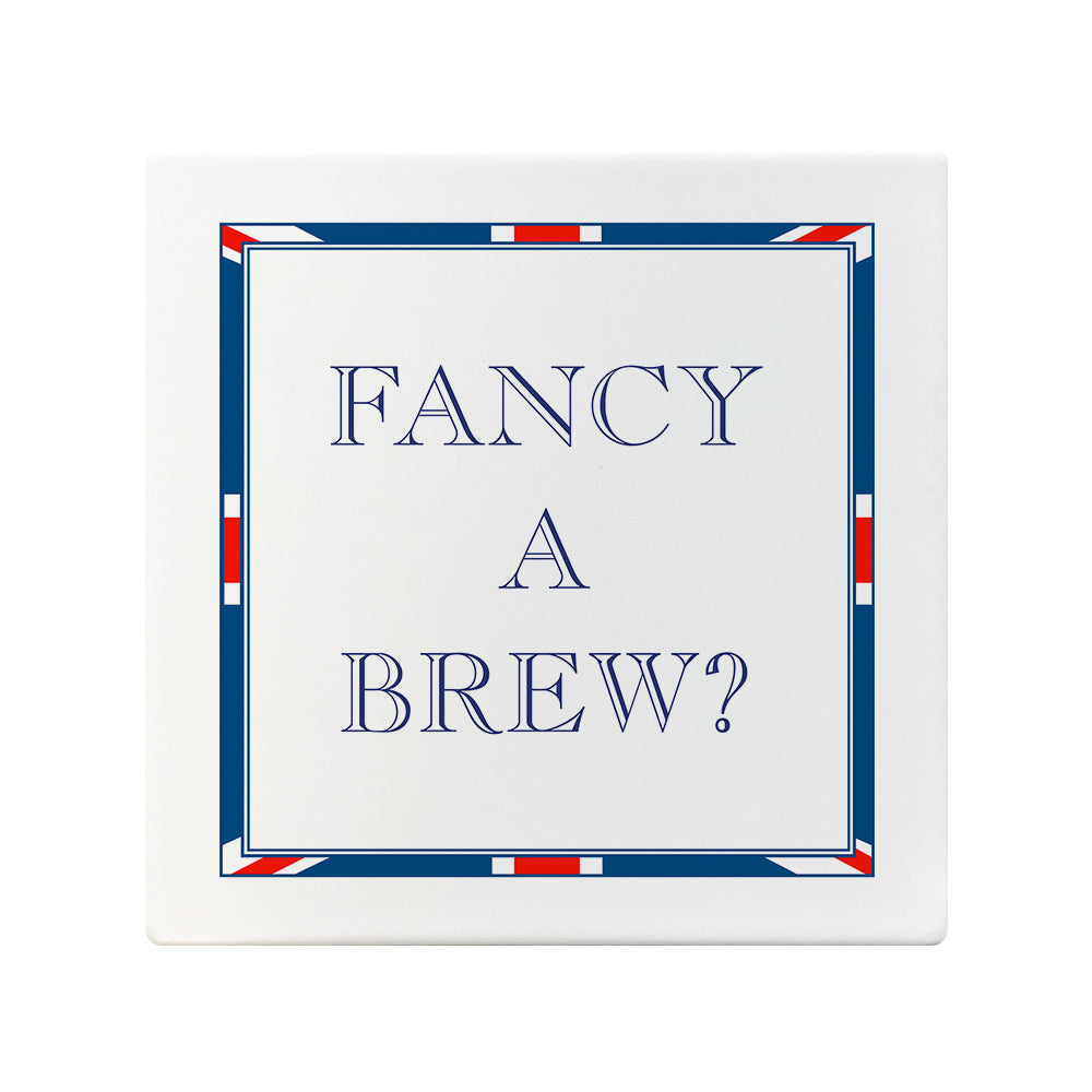 Terribly British Fancy A Brew? Square Ceramic Coaster