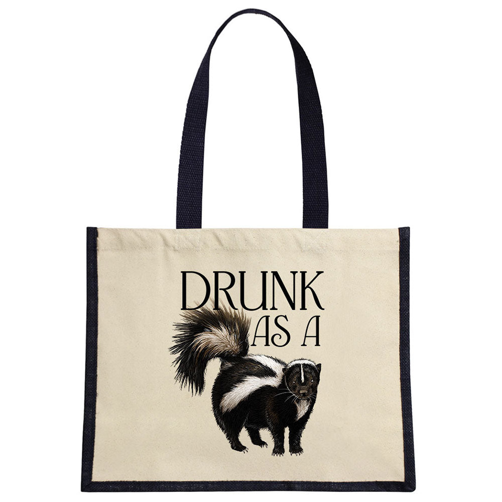Wild Giggles Drunk As A Skunk Cream & Black Jute Bag